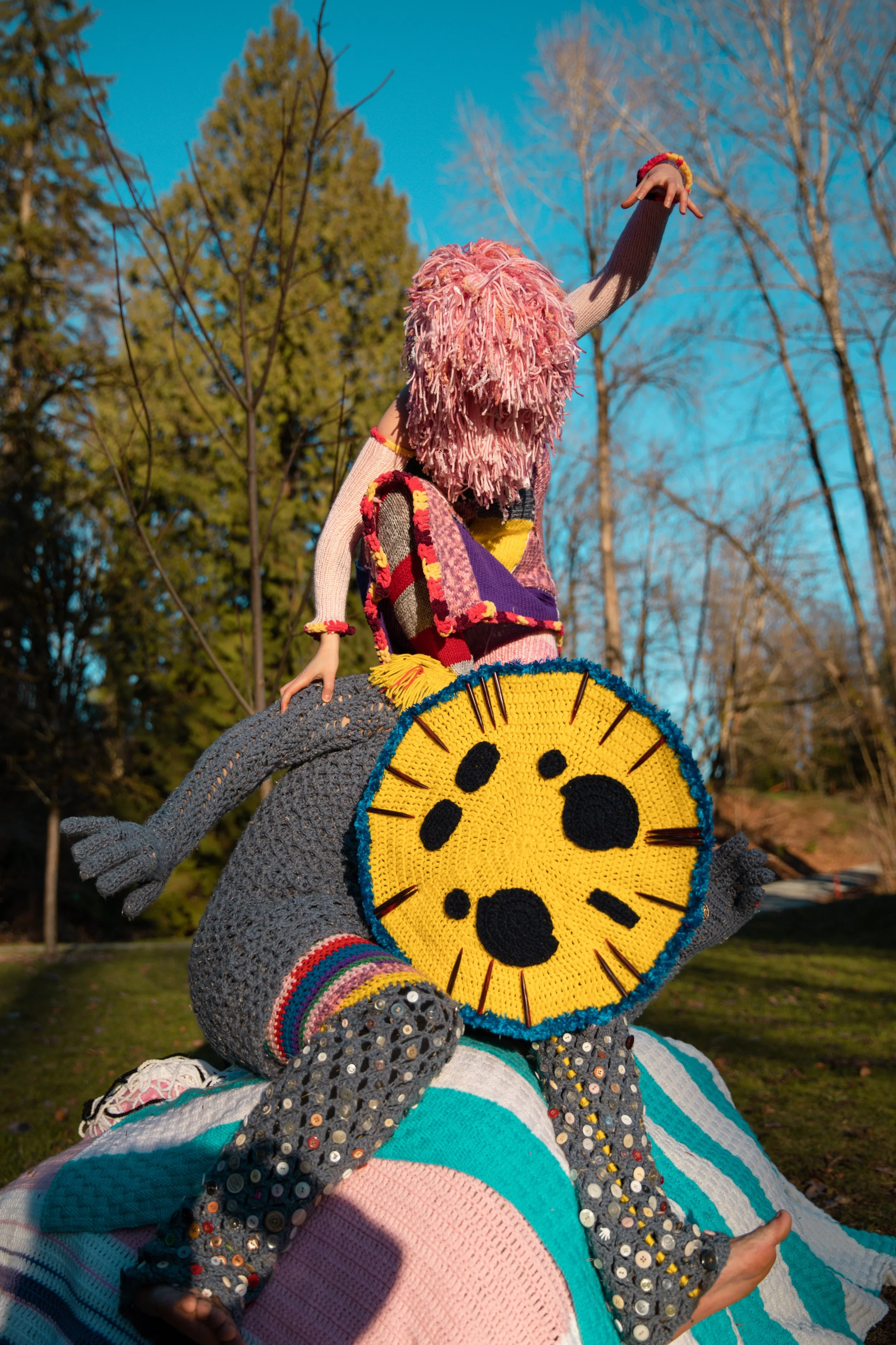 The Midnight Parade is a spectacle of friendship demonstrated by bodies in vibrant crochet heartfully moving through space. It celebrates being exactly where you should be; where you are. It is parading in the dark to emerge lighter.